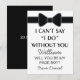 Vous envisagez de demander à quelqu'un d'être votre garçon d'honneur pour votre futur mariage, alors pourquoi ne pas choisir ces cartes classiques de nœud papillon noir pour garçon d'honneur. Cette invitation personnalisée fera que votre ami, frère, cousin, neveu, fils ou qui que vous choisissiez se sentira encore plus spécial. Cette invitation est facilement personnalisable en cliquant sur le bouton 'personnaliser' sous l'image, où vous pourrez modifier le texte, la police et la taille.