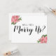 Carte de célébrant de mariage personnalisée avec un fond blanc pouvant être changé en n'importe quelle couleur, et un modèle 'nous marier' avec des fleurs roses dans deux coins pour ajouter une décoration et une joliesse.