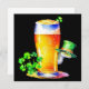 Tous les serpents qui ont quitté l'Irlande boivent dans les pubs d'Angleterre le jour de la Saint Patrick. Aquarelle avec une grande bière et des shamrocks et un serpent dans un casquette vert regardant derrière la bière.