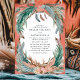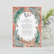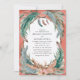 Capturez l'essence d'une fête libre avec cette faire-part de mariage de saumons, avec une couronne de plumes, de feuilles et de fleurs encerclant une zone de texte centrale. Un attrapeur de rêve ajoute une touche de fantaisie, dressée contre un arrière - plan de corail mou. Les tons terreux et les éléments naturels créent une atmosphère sereine et détendue, idéale pour les couples à la recherche d'un style mariage unique et d'inspiration nature.