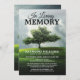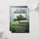 Invitation de service commémoratif funéraire comprenant un jardin/parc à flanc de colline avec un arbre commémoratif, une volée d'oiseaux volants, un ciel dramatique, et une célébration de la vie modèle facile à personnaliser.