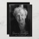 Célébrez la vie de votre être cher avec cette invitation simple, minimaliste et élégante de service commémoratif de la fête de la vie. Le design met en évidence une seule photo avec un filtre noir et blanc personnalisable, complété par un dégradé noir subtil en bas pour une touche élégante. Une simple bordure blanche ajoute un élément spécial. Les polices combinent typographie de script avec lettrage serif classique pour un look raffiné et de bon goût. Au verso de l'invitation, un arrière - plan noir avec des polices blanches offre un espace pour une brève nécrologie ou pour partager des souvenirs, ainsi que des détails sur la célébration de l'événement de la vie. Tout le texte peut être personnalisé et la couleur arrière - plan peut être ajustée au besoin. Célébration De La Vie Élégante Service Mémorial Invitation. Disponible sous forme d'invitation imprimée ou d'invitation numérique téléchargeable que vous pouvez envoyer par e-mail ou avoir imprimé localement !