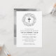 Invitation de service funéraire en noir et blanc avec une croix à l'intérieur d'une couronne de feuilles au-dessus d'un design de typographie simple et moderne. L'arrière est d'une texture d'aquarelle grise et blanche.