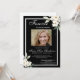 Cette invitation présente une élégante verdure de fleurs blanches et encadre sur un arrière - plan noir avec la photo de l'aimé disparu au centre. Il vous suffit de personnaliser l'invitation et de remplacer la photo de votre proche et les informations concernant les funérailles/service commémoratif. Vous pouvez customiser l'invitation à n'importe quelle façon que vous voudriez se souvenir et honorer la mémoire de votre être cher. Remarque : "Pour toujours dans nos coeurs", la verdure des fleurs blanches d'aquarelle avec cadre et autres éléments graphiques et d'oeuvres d'art ne peut pas être modifiée, modifiée, supprimée ou déplacée. Elles sont réparées.