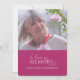 Annoncez le décès de votre proche et les détails de la célébration de la vie service mémorial avec cette simple annonce d'invitation à deux photos de service mémorial rose. Personnalisez avec votre lieu, une photo dans un cadre ovale et le nom de votre proche et les détails de RSVP, plus une photo au verso avec les mots en souvenir affectueux sur un fond rose foncé. Art et design originaux par www.mylittleeden.com