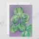 Invités Invitations pour célébrer la Saint Patrick avec cette invitation personnalisable qui présente des oeuvres d'art pastel représentant trois trèfles en feuilles ou des shamrocks en vert tendre sur un arrière - plan mauve muet. Le texte vert foncé est placé contre un arrière - plan vert plus clair accentué par une rotation circulaire de l'oeuvre d'art en haut.