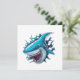 Color Palette: The color palette consists of various shades of blue that represent the skin and scales of the shark, with splashes of lighter and darker blue for highlights and shadows. There are also purple tones in the mouth and parts of the shark's snout, which could suggest a texture similar to leather or cartilage.