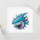 Shark's Mouth: The most striking feature is the open mouth filled with rows of sharp teeth. The teeth are depicted in white against the darker purple interior of the mouth, creating a stark contrast that emphasizes the aggressive nature often associated with sharks.