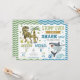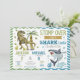 Make waves and stomp into fun with this exciting Shark & Dinosaur joint birthday invitation! This playful design features a watercolor T-Rex roaming through a prehistoric scene on one side and a fierce underwater shark swimming among bubbles and coral on the other — perfect for a shared party full of adventure.