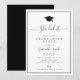 A simple minimal graduation party invitation card with black and white colors. The text details and image can be personalized.