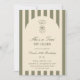Birthday invitation featuring a hand-drawn coffee martini glass and coffee beans paired with elegant script and serif fonts in which your personalized information is written. The background is sage green on a light background. Check out our store for more items from this collection.