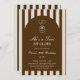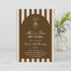 Birthday invitation featuring a hand-drawn coffee martini glass and coffee beans paired with elegant script and serif fonts in which your personalized information is written. The background is brown stripes on a light background. Check out our store for more items from this collection.
