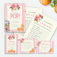 Celebrate the impending arrival of your little one with this vibrant and cheerful "She's Ready to Pop" baby shower invitation. Featuring a delightful tropical floral arrangement with juicy citrus fruits, this design captures the essence of a fun and fruity celebration. The background boasts playful pink and cream stripes, adding a touch of whimsy to the overall theme. This invitation is perfect for announcing your baby shower in a stylish and memorable way, setting a festive tone for guests. Make your baby shower an unforgettable event with this beautifully designed card that's sure to get everyone excited to celebrate with you.