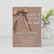 She’s Tying the Knot Bridal Shower Invitation Editable Template | QR Code Bridal Shower Registry Wedding Website | Classy Elegant Mocha Brown Bow Bridal Shower Invite | Modern Classic Neutral Bridal Shower