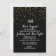 Cette invitation de fête d'anniversaire de mariage Shhh C'est une surprise confettis dorés sur fond noir est parfaite pour une célébration élégante et surprise d'anniversaire de mariage. Le design présente de faux confettis dorés sur fond noir avec une calligraphie blanche élégante.