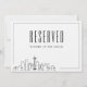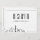 Pas si vite... Assurez-vous que le siège n'est pas pris pour quelqu'un, mais cette personne spéciale dans votre famille ou votre mariage. Ce panneau unique réservé au mariage est destiné à un mariage qui se déroule dans la belle ville de Seattle et présente un plan déco de la ligne d'horizon de la ville ainsi qu'un emplacement pour le nom de l'occupant du siège.