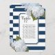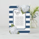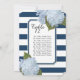 Ces cartes d'affectation de table peuvent être utilisées sur chaque table ou à l'entrée de votre réception. Ces cartes de numéro de table peuvent être encadrées, placées sur un support ou utilisées de nombreuses manières pour diriger vos invités vers leur table pour votre réception de mariage formelle, votre douche de mariée ou votre événement professionnel formel. Changez simplement le numéro de table et la liste d'invités pour chacune d'elles et placez-la dans votre panier. Montré ici avec un placement pour 10 personnes par table, vous pouvez ajuster la liste à vos besoins et simplement la faire glisser et centrer lorsque vous avez terminé en utilisant la fonction "personnaliser". Ce design présente un motif floral peint à la main avec des fleurs d'hortensia bleu clair. Un fond rayé large, bleu marine et blanc, est associé à un cadre de style art déco aux coins encochés qui est contourné d'un faux scintillement argenté. Droit d'auteur de l