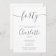 Dotée d'un nom de style signature, cette élégante invitation à l'anniversaire de 40 ans gris et blanc peut être personnalisée avec vos informations en lettres grises chic. Conçu par Thisnotme©
