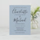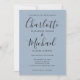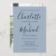 Avec des noms de style signature, cette élégante invitation de mariage peut être personnalisée avec vos informations en lettrage blanc chic sur un arrière - plan bleu poussiéreux avec votre photo choisie au verso. Vous pouvez customiser la couleur arrière - plan pour correspondre à votre thème mariage. Conçu par Thisisnotme©