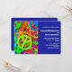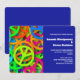 Une invitation de mariage avec une ambiance des années soixante. Des signes de paix cool dans des couleurs néon vives et vibrantes présentant toutes les couleurs de l'arc-en-ciel.