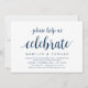 Moderne Rustique, Carte d'invitation sur le thème du script bleu marine (avec le titre de la carte: s'il vous plaît aidez-nous à célébrer). C'est parfait pour votre réception de mariage après la cérémonie / fête de célébration après le mariage. Ajoutez vos détails dans une police / lettrage noir assorti.