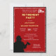 Invitation unique à la retraite pour un pompier ou un chef d'incendie. Design a une silhouette pompier avec une hache, casquettes d'incendie sur le dos et le libellé pour une invitation de retraite. Facile à customiser avec les détails de votre fête.