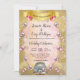 Cartes faire-part de mariage uniques avec dentelle d'or, perles et anneaux d'or filetés à travers la soie d'ivoire avec un arrière - plan de marbre rose.