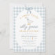 Perfect for hosts looking for a classic goose baby shower theme, this invitation is ideal for cottagecore baby showers, preppy baby celebrations, blue gingham baby showers, and storybook inspired events.