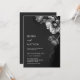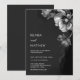 This elegant dark moody floral wedding invitation features silver gray flowers on a black background. Dark aesthetic wedding invitation.