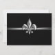 Ces élégantes invitations à l'évènement Silver Black Fleur de Lis sont ornées d'une imitation de métal argenté symbole Fleur de Lis sur un arrière - plan noir. Personnalisez-vous avec votre entreprise, votre cravate noire ou toute autre information spéciale sur l'événement à l'arrière, qui présente une fleur de Lis en argent à la bordure noire et un arrière - plan en dégradé qui imite un projecteur en diamant.