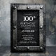 Invitation Silver Frame Black Slate 100th Birthday Party