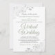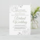 Ce n'est pas parce que vous avez été forcé de déplacer votre mariage vers une cérémonie virtuelle que vous ne pouvez pas envoyer de belles invitations. Cet élégant invitation présente un script vert et gris de sage fantaisie en lettrage sur un arrière - plan blanc avec un faux fil argenté floral en dentelle ou des boucles et tourbillons dans les coins. Un moyen parfait d'invitation vos amis et votre famille pour partager votre journée spéciale, même s'ils ne peuvent pas être là en personne.