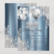 Invitation Silver Glitter Drips Balloons Blue Metallic 100th