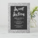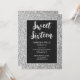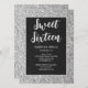 Personnalisez et customisez l'invitation fausse moelleuse Sweet 16. Collection de sweets sixteens par PLdesign. La parties scintillant noire et blanche scintille. De belles parties scintillant brillantes brillantes scintillent. Photo de la parties scintillant grise pétillante !