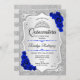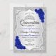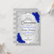 Quinceanera Party - Invitation Argent. Caractéristiques rayures, police de script, roses bleu royal, tiara et confetti. Design élégant avec feuille d'argent en fausse parties scintillant. Parfait pour une élégante célébration de glamour.
