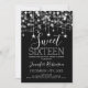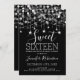 Elégant Argent & Black Sweet 16 Anniversaire Fête Sparkly String Lights modèle d'invitation.
