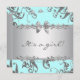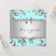 Turquoise bleu et argent damassé invitation de douche bébé fille. Elégante invitation à la douche bébé bleu turquoise. Invitations turquoises de douche bébé bleu argenté.