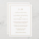 Faire-part de mariage tout-en-un simple, moderne et élégant, avec votre monogramme à deux lettres en haut et vos détails entourés d'une fine bordure. Tous les éléments de conception sont faux or sur un arrière - plan blanc et peuvent être changés en n'importe quelle couleur que vous souhaitez dans l'outil d'édition de conception. L'arrière dispose de tous vos détails mariages, éliminant le besoin d'une carte d'enceinte séparée, ce qui en fait une suite de faire-part de mariage économique. Un design chic et design qui conviendra à un couple minimaliste.