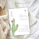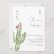 Invitation Simple aquarelle Cuctus Fleur Croix Baptême