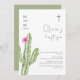 Aquarelle minimaliste moderne cactus croix florale baptisant invitation au baptême. Pour modifier les couleurs et les polices, choisissez de modifier cette conception pour ouvrir d'autres options de personnalisation.