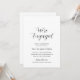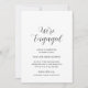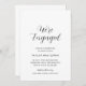 Invitations contemporaines de fiançailles en noir et blanc avec une disposition simple et minimaliste avec "We're Engaged" dans un élégant script de calligraphie. Un design moderne qui va bien avec n'importe quel style de fiançailles.