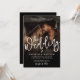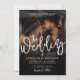 This simple and elegant wedding invitation features a clean, modern layout with space to showcase a photo of the couple in the background. A soft black gradient at the top and bottom ensures the white text remains easy to read while blending smoothly into the image.