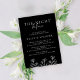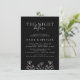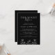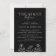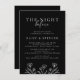 Élevez votre dîner de répétition mariage avec cette invitation intemporelle et élégante. Lancez vos festivités mariages dans le style avec cette invitation simple mais étonnante. La palette classique de couleurs noir et blanc et la délicate bordure florale créent un air d'élégance, donnant le ton pour un dîner de répétition inoubliable. Imprimée sur un arrière - plan noir, cette invitation exsude le raffinement dès l'ouverture de l'enveloppe par vos invités. Personnalisez-le avec les détails de votre événement pour le rendre unique. Que vous planifiez une réunion intime ou une fête plus grande, cette invitation fera que vos invités anticipent avec impatience l'événement principal.