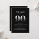 Invitation vos amis et les proches à une fête de 90e anniversaire surprise avec cette invitation minimaliste minimaliste d'anniversaire noir et argent.
