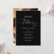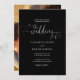 Cette simple et élégante invitation de mariage peut être personnalisée avec vos détails de célébration mis en typographie chic sur un arrière - plan noir et votre photo spéciale au verso. Conçu par Thisisnotme©