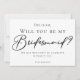 Simplement chic et élégant, notre collection minimaliste de mariage d'hiver comprend une typographie cursive élégante pour votre événement moderne. Envoyez cette carte Will You Be My Bridesmaid à vos meilleurs amis. Une carte officielle de proposition de parti nuptial.