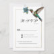 Ce cadre simple blanc et or avec aquarelle bleu, vert coloré colibri floral Wedding RSVP Invitation est un choix parfait pour les couples à la recherche d'une touche simple et belle à leur grand jour. Ce cadre de fleurs de colibri peint à la main entoure vos détails mariages. Offrez à vos invités un merveilleux aperçu de votre mariage pour venir cette invitation sera un ajout fantastique à vos événements mariages.