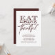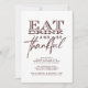 Invitation votre famille et vos amis à votre fête de Thanksgiving avec ce design moderne simple. Cette carte présente un design typographique "Eat Drink and be Thankful" sur un arrière - plan blanc créant un look moderne.