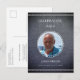 Un design simple de célébration de la vie que vous pouvez personnaliser. Un faux aspect lin gris foncé et un emplacement pour une photo créent une invitation de carte postale mémorable.