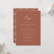 Invitation simple de mariage d'automne. Avec des citrouilles et des éléments botaniques en ligne dessinée à la main, ces invitations créent un look simple mais élégant avec du texte crème sur un fond terracotta. Ce style classique et bohème est sûr d'impressionner vos invités et de rendre votre mariage aussi inoubliable que le moment où vous avez dit “oui”. Trouvez des produits assortis dans la gamme d'invitations de mariage en ligne dessinée Terracotta Pumpkins.